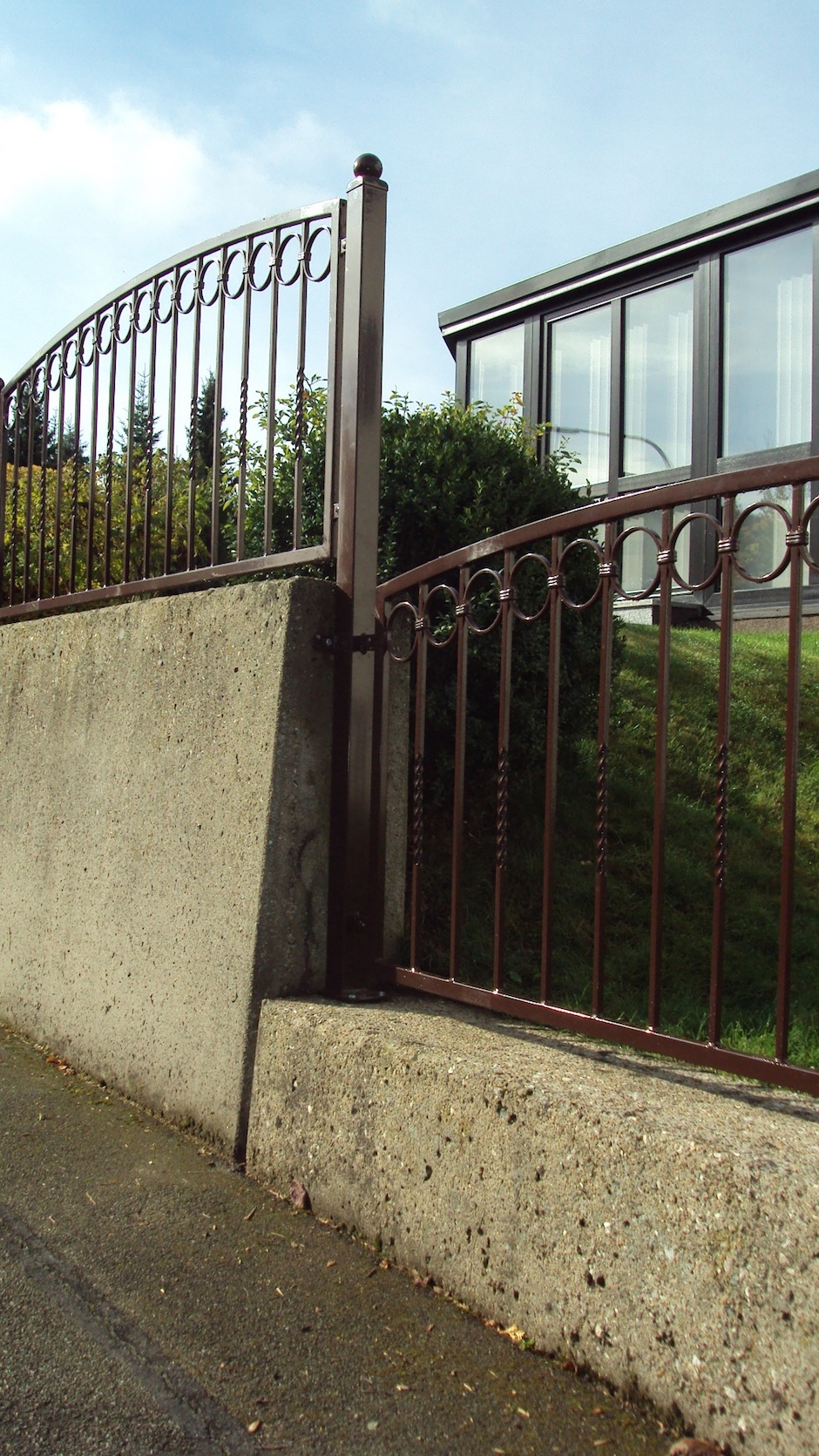 Schmiedeeisernen Zaun mit dekorativen Pforten